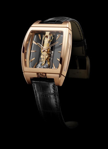 Новый эксклюзивный часовой калибр типа «багет» с линейным устройством автоматического подзавода получил название C0313. Его разработка велась более четырех лет и была сопряжена с большим объемом экспериментальных работ по изучению материалов, сил трения и показателей эффективности. Новый механизм оснащен линейным инерционным грузом из платины, который, как и заводной барабан со скользящей пружиной, хорошо виден с обеих сторон часового корпуса. Частота колебаний баланса составляет 4 Гц (28 800 полуколебаний в час), а запас хода — 40 часов. Часовой механизм состоит из 194 деталей. Его баланс с переменным моментом инерции гарантирует неизменно высокую точность хода на протяжении долгих лет, а заводной барабан уменьшен до таких размеров, чтобы он не нарушал ровную вертикальную линию всей конструкции. Платина и мосты механизма изготовлены из золота