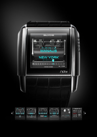 Slyde — это уникальные цифровые часы, разработанные основателями часового бренда HD3 Йоргом Хайзеком и Фабрисом Гоне. Концепт Slyde — это революционный эксперимент, сочетающий в себе продукт высоких технологий и интернет-платформу, позволяющую персонализировать часы путем загрузки новых виртуальных механизмов.